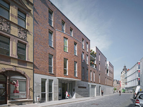 Das Bildungshaus St. Ursula befindet sich in der Erfurter Altstadt, in unmittelbarer Nachbarschaft der Fußgängerzone des Angers. Mit dem Erweiterungsneubau wurde die ehemals vorhandene Bebauung am westlichen Ende der Trommsdorffstraße wieder hergestellt, gleichzeitig wird der Verlauf der Pferdegasse als Straßenraum neu definiert. Der 46 m lange Baukörper zeigt eine gleichmäßige vertikal betonte Fenstergliederung, die unterbrochen wird durch die eingezogenen Loggien, die sich bis in das Flachdach einschneiden und den Baukörper in seiner Länge gliedern. Die Gestaltung nimmt sowohl Bezug auf den historischen Bestand, als auch auf den gegenüberliegenden Neubau des Karstadt- Sporthauses. Mit der Sichtbetonfassade im Erdgeschoss und der Klinkerfassade der Obergeschosse entspricht es in Gestaltung und Materialität den umgebenden Gründerzeitfassaden. Der straßenseitige Erker betont den Haupteingang im Erdgeschoss, in das Foyer des Bildungshauses “St. Ursula“. Im 1. Obergeschoss befindet sich ein Speiseraum mit Küche und Personalbereich des Bildungshauses. In dem verbleibenden 2. und 3. Obergeschoss sind Wohnungen unterschiedlicher Größe entstanden, welche jeweils über Loggien als Außenräume verfügen.